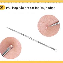 - Với 4 cây nặn mụn với 8 đầu nhọn, tròn, cong giúp bạn nặn được hầu hết các loại mụn