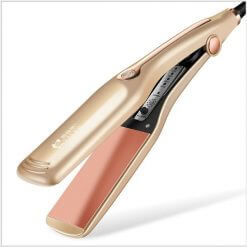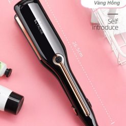- Lưỡi ép bằng hợp kim với gốm tourmaline cao cấp, bên ngoài bọc titan vàng hồng sơn phủ chống khô tóc.